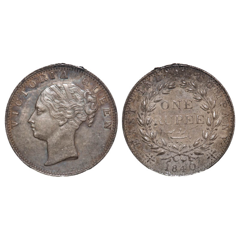 Victoria Queen, Silver, Rupee, 1840, CL, Calcutta Mint, A/II, English Head, With bud leaves above '...
