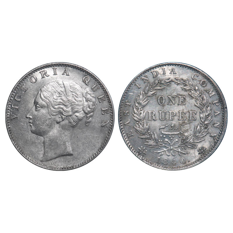 | Victoria Queen, Silver, Rupee, 1840, CL, Calcutta Mint, A/VI, English Head, Wreath with 35 Berries (20L + 15R), With tiny berry opposite 'O' of One. F. Prid 44. GK 86. Extrmely Fine+. Very Scarce. |