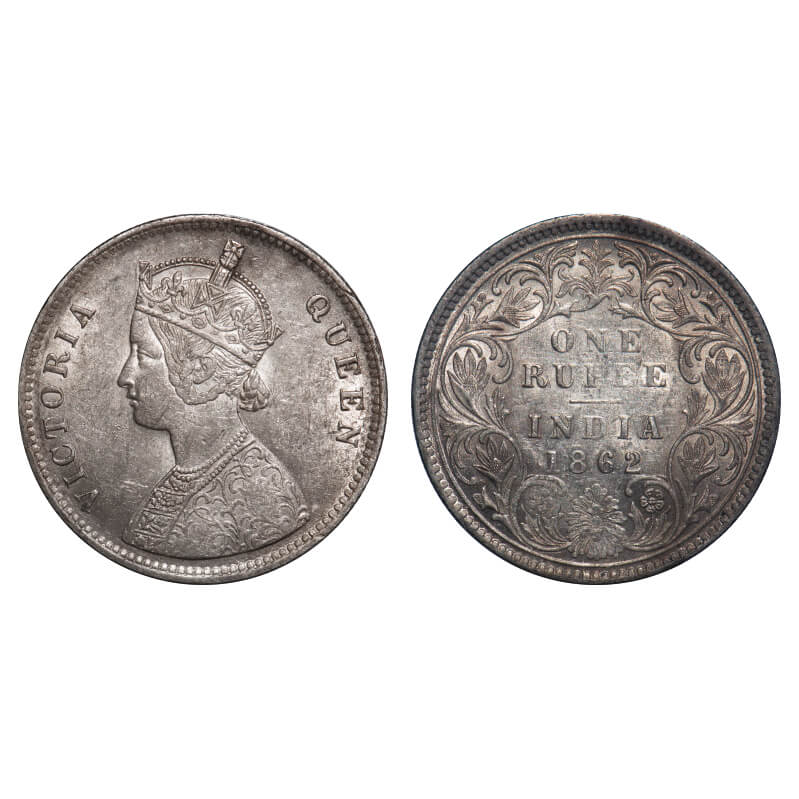 Victoria Queen, Silver, Rupee, 1862, Madras Mint, B/II/0/0, With enclosed frame effect and w/o re e...