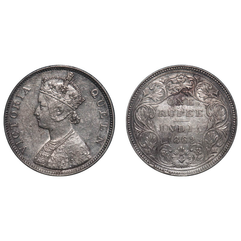 Victoria Queen, Silver, Rupee, 1862, Bombay Mint, B/II/1/0. F. Prid 69. GK 286. About Uncirculated....