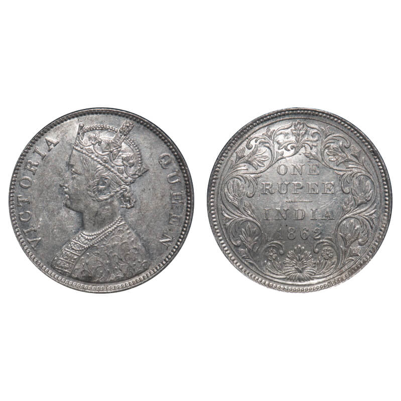 Victoria Queen, Silver, Rupee, 1862, Bombay Mint, B/II/1/0. F. Prid 69. GK 286. About Uncirculated....