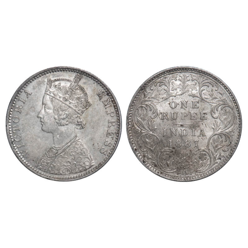 | Victoria Empress, Silver, Rupee, 1887, Bombay Mint, C2/I(ii), 'B' incused, B incused inverted. F. Prid Unlisted. GK 546. Uncirculated, Details. Rare. |