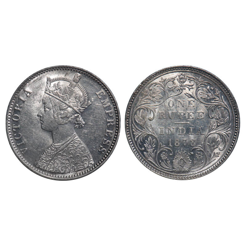 Victoria Empress, Silver, Rupee, 1878, Calcutta Mint, A1/I, No mint mark. F. Prid 116. GK 455. NGC ...