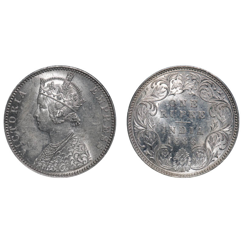 Victoria Empress, Silver, Rupee, 1886, Bombay Mint, C2/I, 'B' incused. F. Prid 171. GK 523. Uncirculated. Rare.