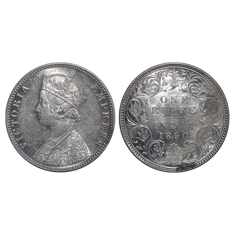 Victoria Empress, Silver, Rupee, 1890, Bombay Mint, C2/I, 'B' incused. F. Prid 178. GK 566. Mint State with original mint luster. Rare.