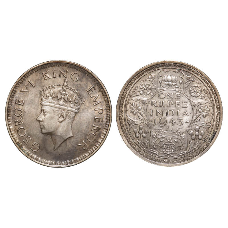 George VI, Half Silver, Rupee, (2 coins), 1943, Bombay Mint, 1) B(a)/II, Diamond, Security edge, Sm...
