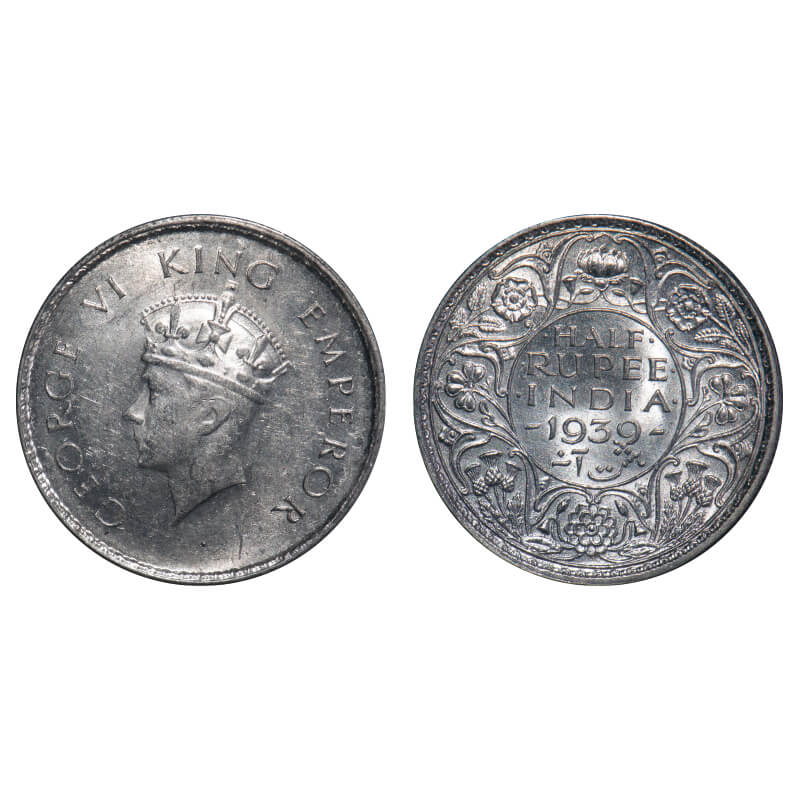 | George VI, Silver, Half Rupee, 1939, Calcutta Mint, A/I, No dot, Head Type I, Milled edge. F. Prid 363. GK 1297. Brillaint Uncirculated. Rare. |