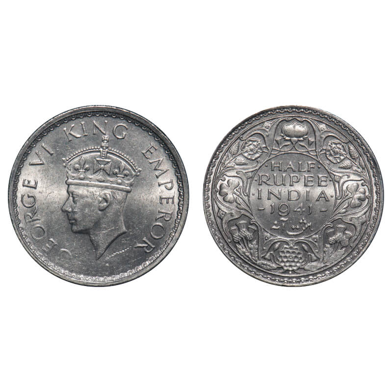 George VI, Half Silver, Half Rupee, 1941, Bombay Mint, A(a)/I(i), Dot, Head Type II, Security edge....