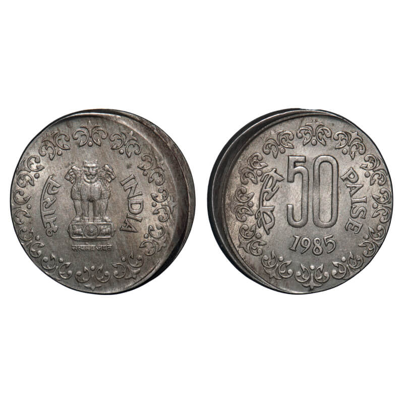 50 Paisa, 1985, Cu-Ni, 5.02g, Calcutta Mint, Die cap Error, About Uncirculated, Scarce.