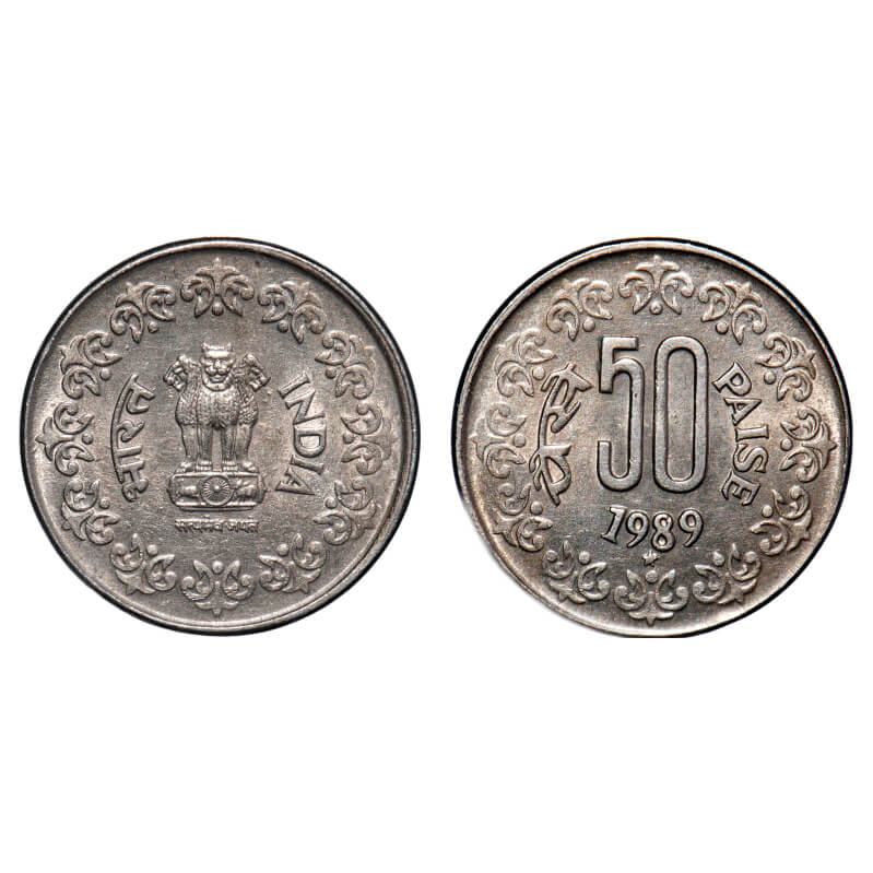 50 Paise, 1989, Cu-Nic, 4.80g, Hyderabad Mint. Extremely Fine+. Rare.