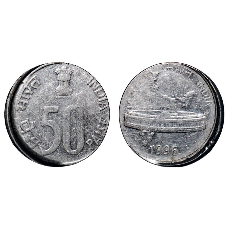 50 Paisa, 1996, FSS, 3.80g, Calcutta Mint, Die cap error. About Uncirculated, Scarce.
