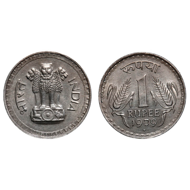 1 Rupees, 1979, Cu-Ni, Bombay Mint, Obverse Mule, lion Variiety on obverse. Almost Uncirculated, Rare.