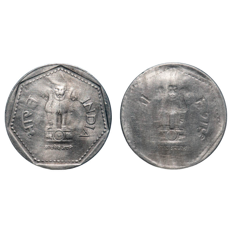 1 Rupee, 1983, Cu-Ni, 5.94g, 10% die shift error. Very Fine, Scarce....