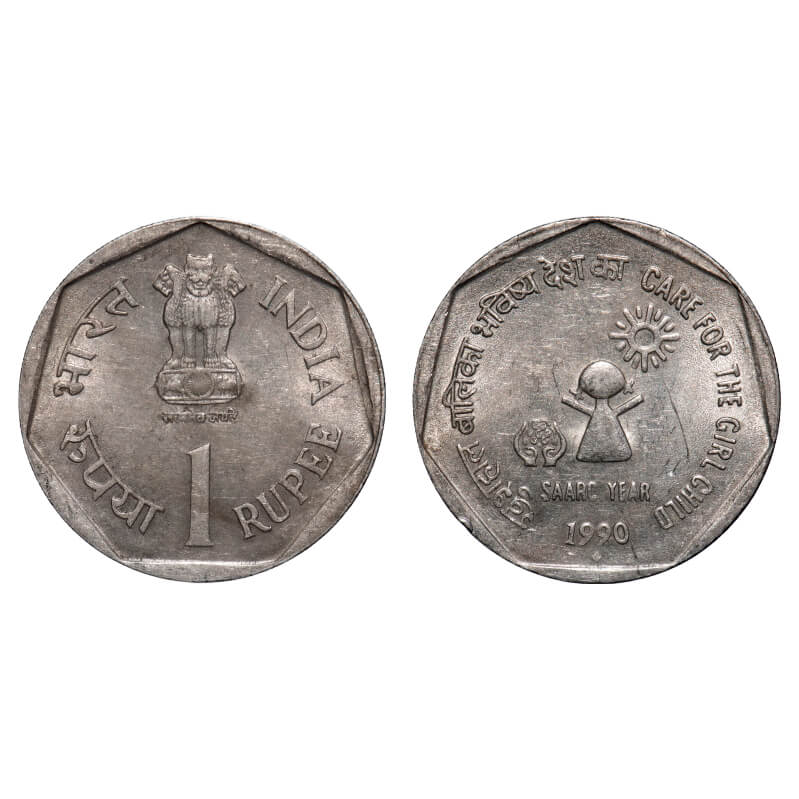1 Rupee, 1990, Cu-Ni, 6.05g, Care for the Girl Child, Bombay Mint. Security edge. Almost Uncirculated, Scarce.