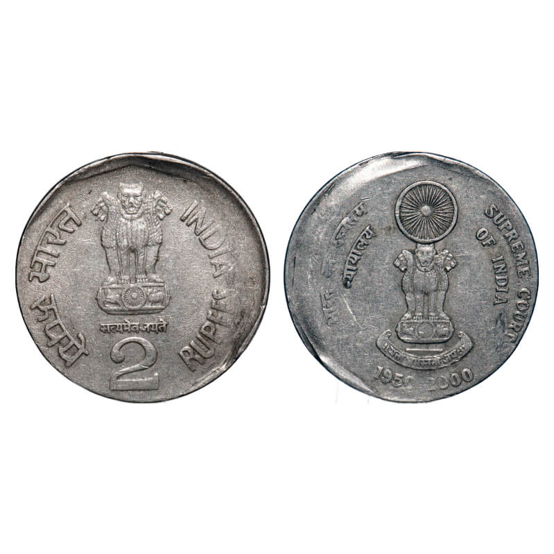 2 Rupees, 2000, Cu-Ni, 5.89g, Calcutta Mint, Supreme Court of India, 10 % die shift error. Very Fine, Scarce.
