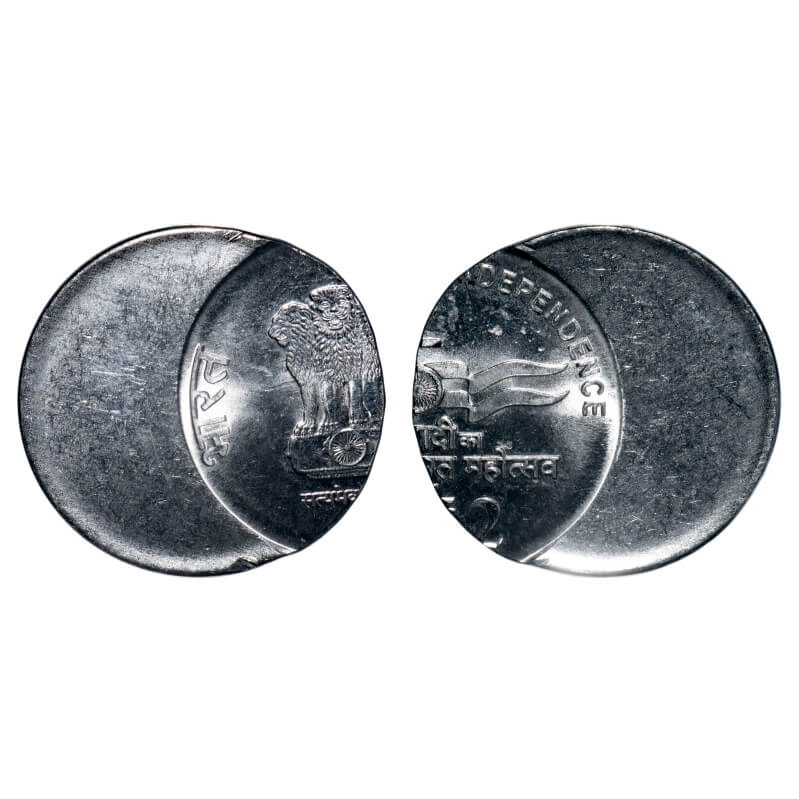 2 Rupees, 2022, FSS, 4.12g, 75th year of independence, known as Azadi Ka Amrit Mahotsav, Error: 50 % off center struck. Uncirculated, Scarce.