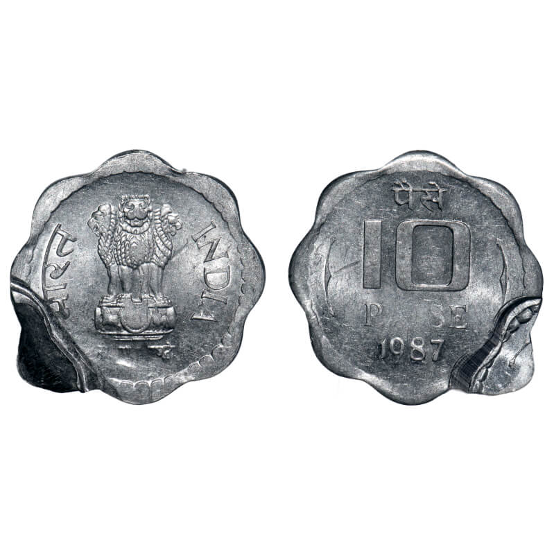 10 Paise, 1987, Aluminium, 1.73g, Calcutta Mint, Error-double struck, Uncirculated, Scarce.