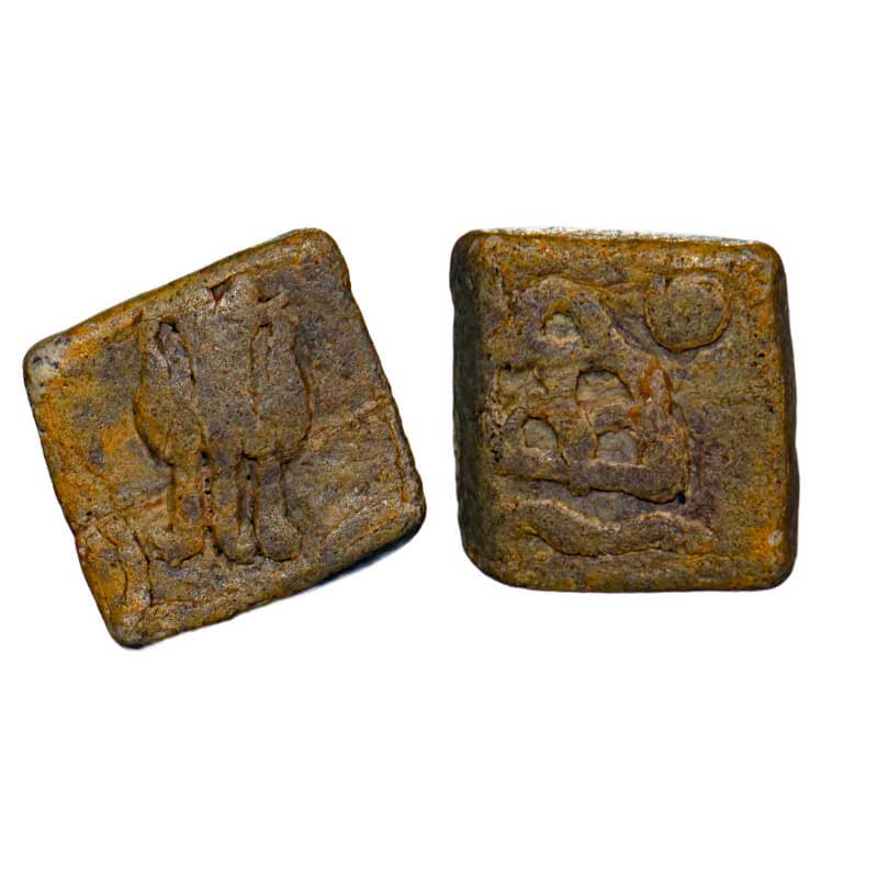 | Western Kshatarpas, Anonymous issue, Vidarbha Region, Lead Unit, 1.20gm, 8.32x8.42mm, Obv: Front facing elephant, Rev: Three arched hill below wavy line above sun symbol. Pieper # 3469. Very Fine, Scarce. |