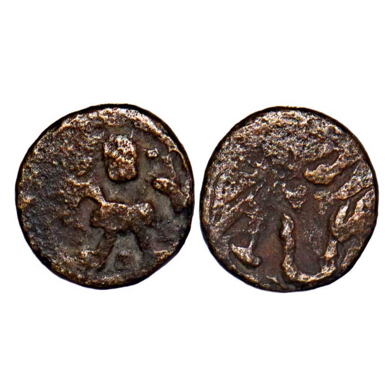 | Guptas, Kumaragupta (c. 415 - 450 AD), Madhyadesha type (MP), Copper Unit, 0.33gm, 7.56x8.03mm, Obv: Stylized Garuda emblem, Rev: Partial Brahmi legend 'GUPTA'. Fine. Very Rare. (Copper coins of Gupta dynasty are considered to be very rare, especially issues of Kumara Gupta.) |