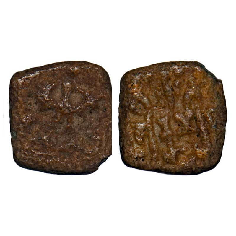 | Guptas, Kumaragupta I, Lead Unit, 2.40gm, 13.55x12.92mm, Garuda Type of Western India, Obv: Garuda standing with wings outstreached, with beaded border around, Rev: Brahmi legend ‘Shri Kumaragupta’ in a square border of dots. Pieper # 3584. Very Fine, Scarce. |
