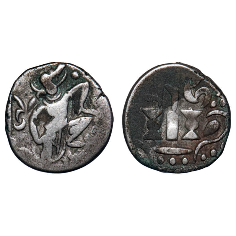 Kalachuris of Mahishmati, Krishnaraja (c. 550-575 AD), Silver Drachma, 1.61gm, 12.26x10.79mm, Obv: ...