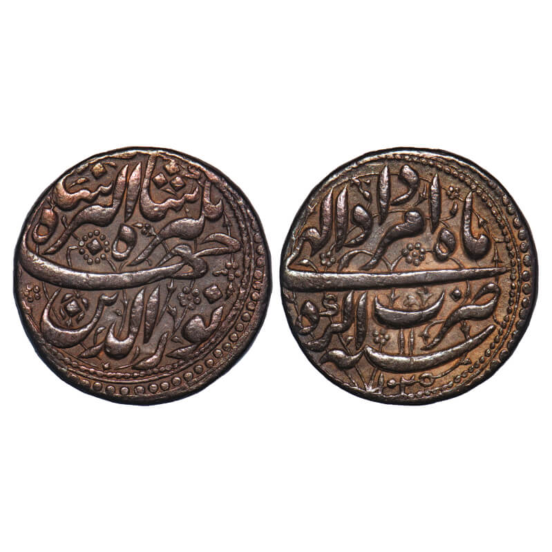 | Jahangir (1605-1628 AD), Silver Rupee, 11.41g, Agra Mint, AH 1025/11 RY, Month 'Amardad', ornamented, with partial dotted borders both sides. KM 145.1. Toned Extremely Fine, Rare. |