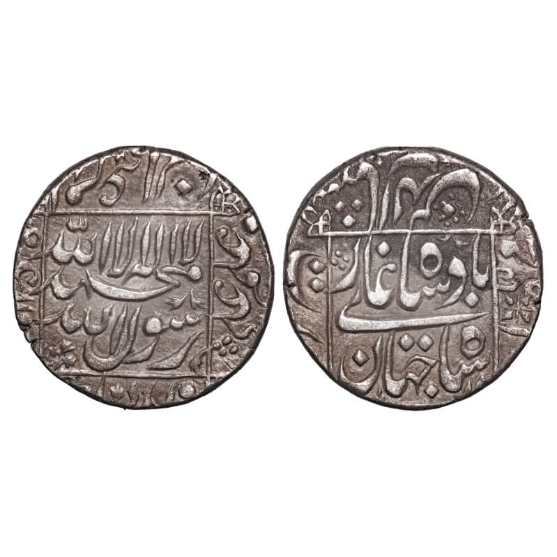 | Shah Jahan I, (AH 1037-1068 /1628-1658 AD), Silver Rupee, 11.45g, Surat Mint in left margin, AH 10xx/18 RY, legends in square area, Sharp strike, No test mark , Toned, About Extremely Fine, Scarce. |