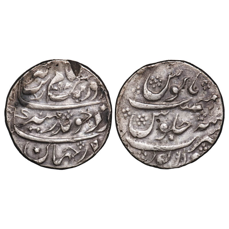 Aurangzeb, Silver Rupee, 11.09g, Lakhnau Mint, 37 RY. KM 300.54. About Extremely Fine, Very Scarce....