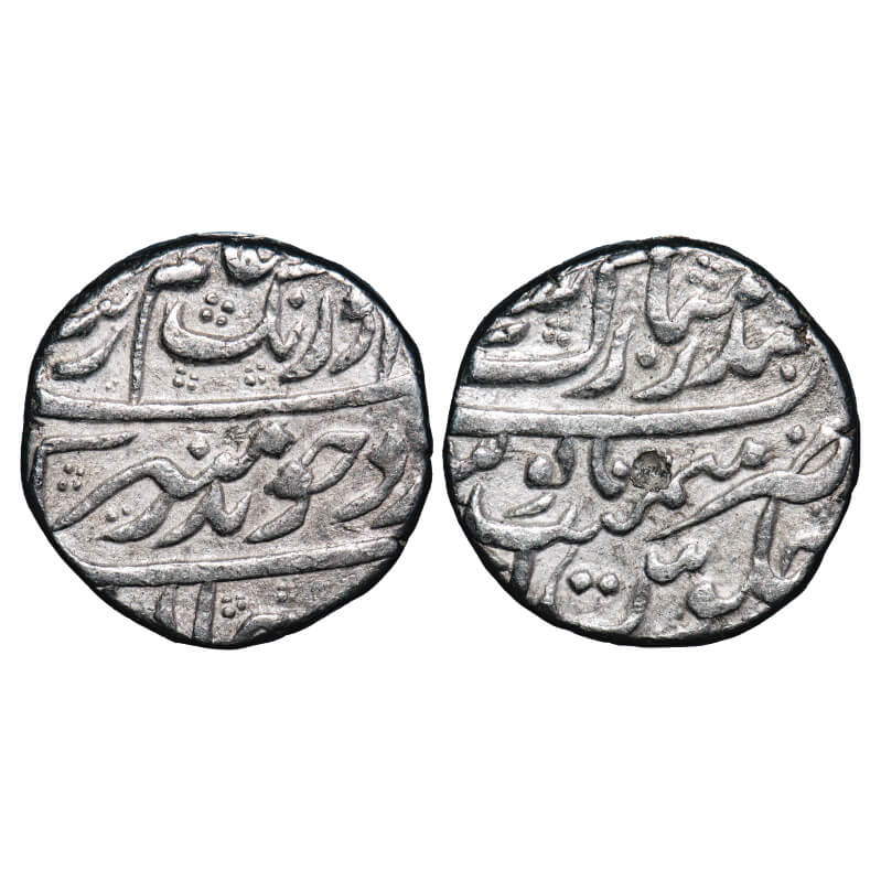 Aurangzeb, Silver Rupee, 11.45g, Bandar-i-Mubarak Surat Mint, Ahd (1) RY, complete mint name and epithet on rev. top. KM 300.85. About Extremely Fine, Scarce.