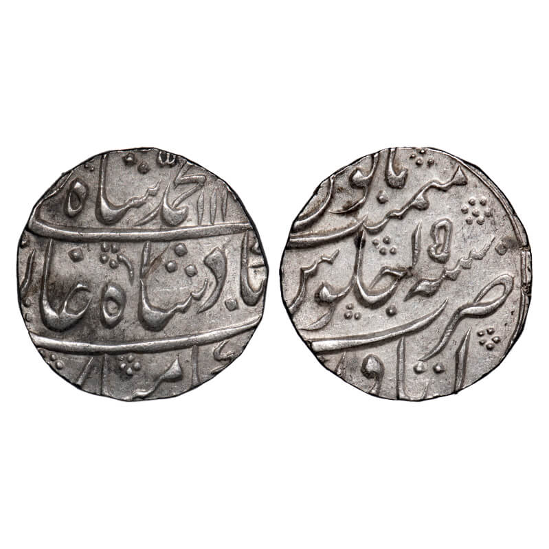 Muhammad Shah, Silver Rupee, 11.66g, Junagarh Mint, 1x RY. KM 436.32. Very Fine, Rare....