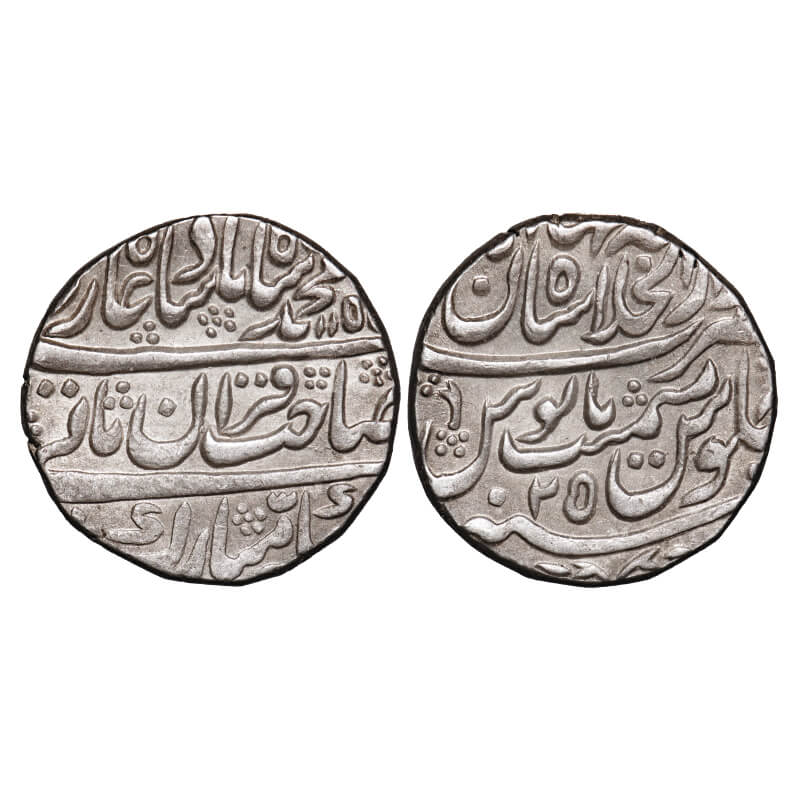 Muhammad Shah (AH 1131 - 1161 /1719 - 1748 AD), Silver Rupee, 11.35g, Dar-ul-Khilafat Shahjahanabad Mint, AH 115x/25 RY, No test mark, Extremely Fine+, Scarce.
