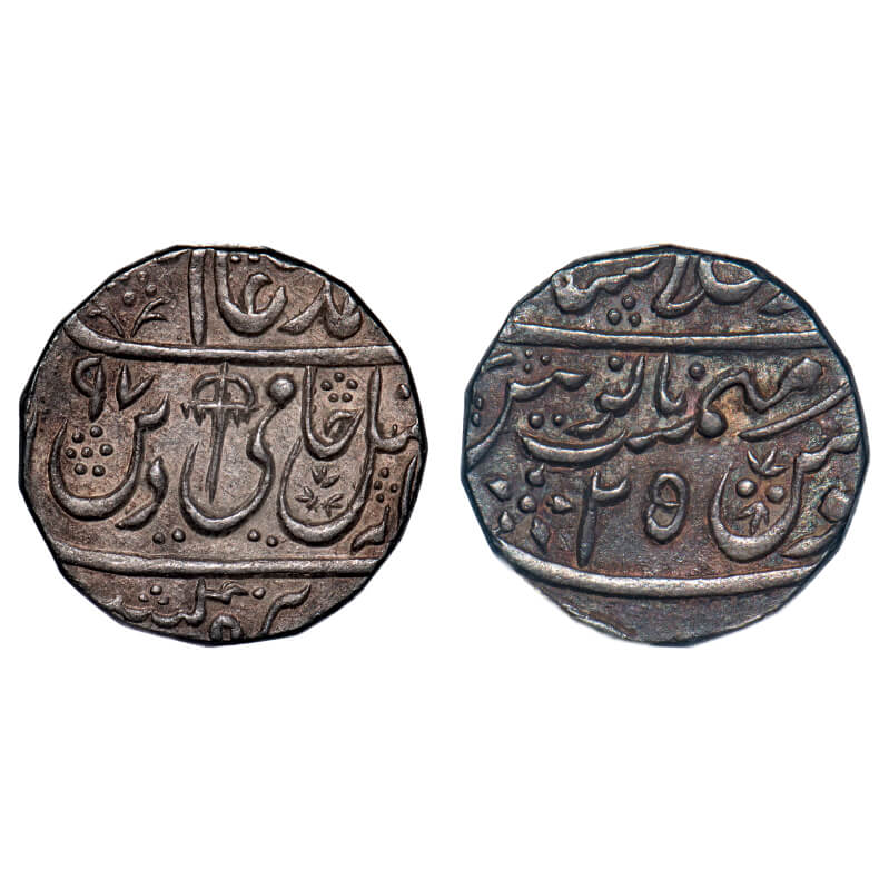Shah Alam II, Silver Rupee, 11.20g, Shahjahanabad Dar ul Khilafat Mint, AH (11)97/25 RY, with Parasol and star. KM 709.2. Toned Extremely Fine, Scarce.