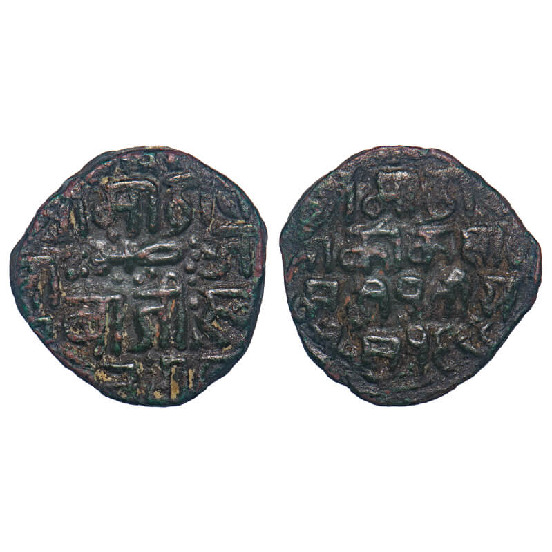 | Gond Kingdom of Devgarh, Copper Paisa, 13.13g (Heavy), Kokashah (1620-1640 AD), AH 162x, double struck, Obv: Sri Raja Jatabaji Suta. Rev: Sri Maharajraja Kokasahi Mahipati Saka. broad flan, dated coins a rare. KM 8 type. Very Fine, Rare. |