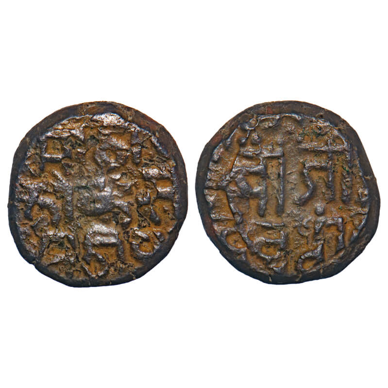 Gond Kingdom of Devgarh, Copper Paisa, 9.22g, Kokashah (1620-1640 AD), double struck, Obv: Sri Raja Jatabaji Suta. Rev: Sri Maharajraja Kokasahi Mahipati Saka. KM 11 type. Very Fine, Rare.
