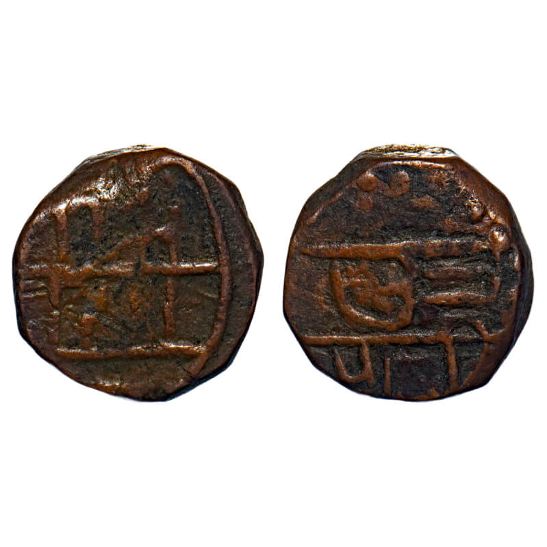 Maratha Confederacy, Copper Shivrai 1/2 Paisa, 6.96g, Obv: error type script, (Shri Raja Shiv) within single lined border, Rev: Chhatrapati, with partial dotted border border. Very Fine, Scarce.