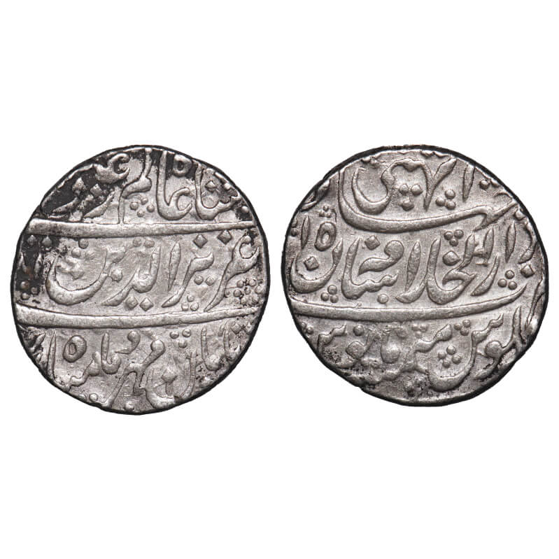 | Maratha Confederacy, Silver Rupee, 11.19g, Athni, Shahjahanabad Dar ul Khilafat Athni Mint, AH (11)81, INO Alamgir II, 'Taban' Couplet. M&W T2 type. Very Fine, Scarce. |
