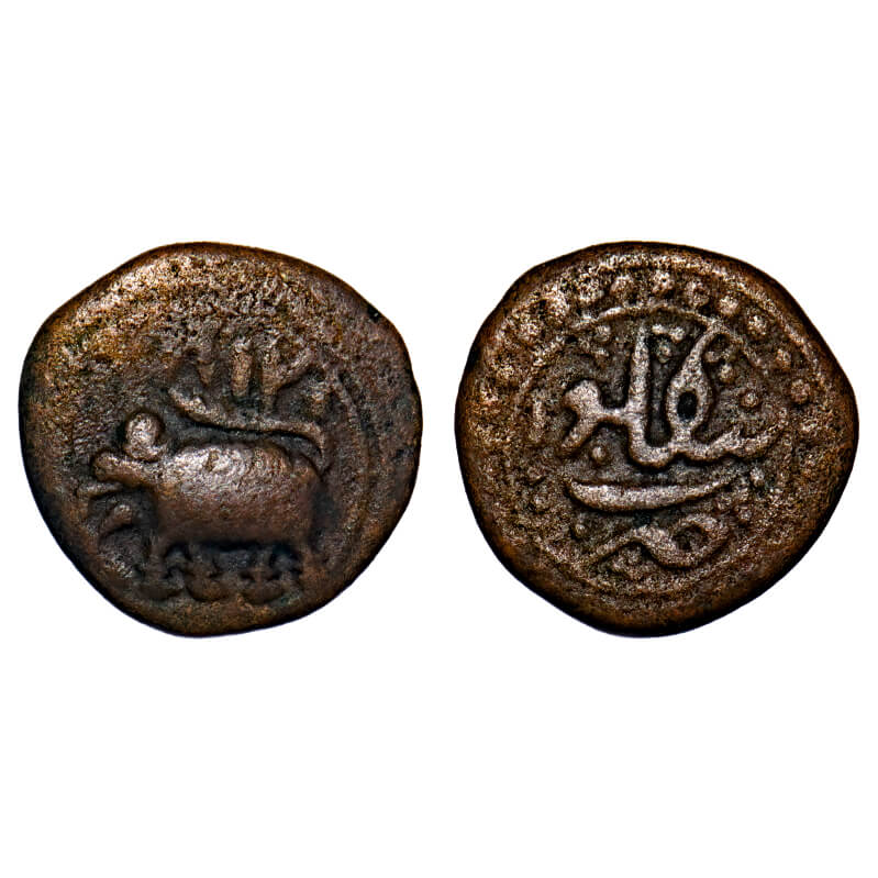 Mysore, Copper 1/4 Paisa, 2.76g, Tipu Sultan Bengalur Mint, AM 1218 Retro, Obv: Elephant to left above date within double lined border, Rev: Mint within doublle lined ditted border. KM 31.2/ Henderson 368. Very Fine, Scarce.