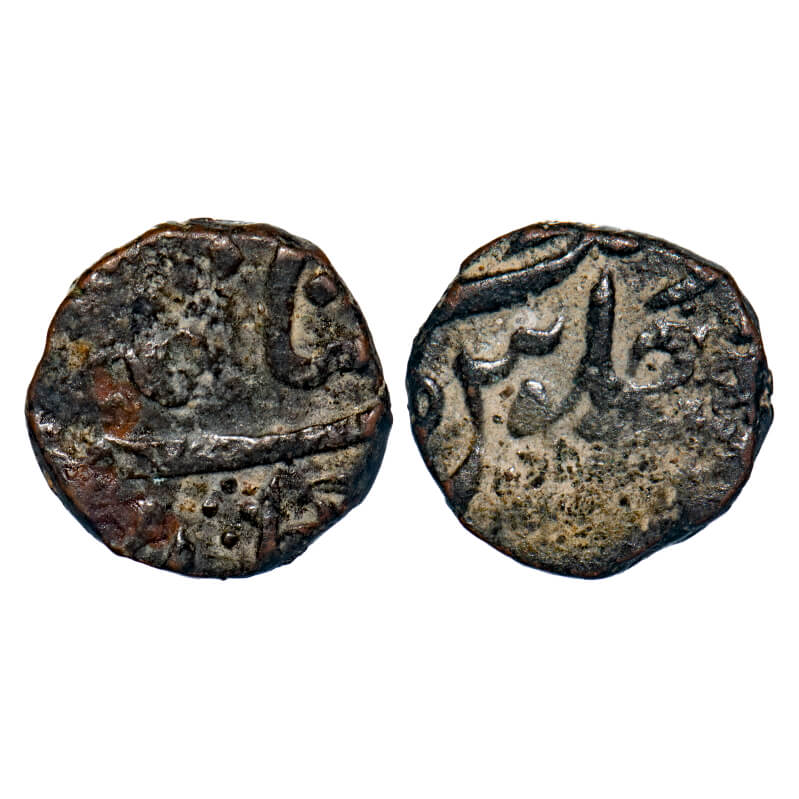 Bhaunagar, Copper Paisa, 6.74g, Anonymous issue, obverse Overstruck on Baroda coin. Very Fine, Scarce.