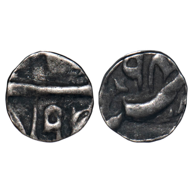 Bhopal, Silver 1/16 Rupee, Nawab Hayat Mohammad Khan ( 1777-1808 AD), (Daulatgarh) Mint, INO Muhammad Akbar II, AH (12)94/9 RY. (similar type of KM 14) KM Unlisted. Very Fine+. Scarce.