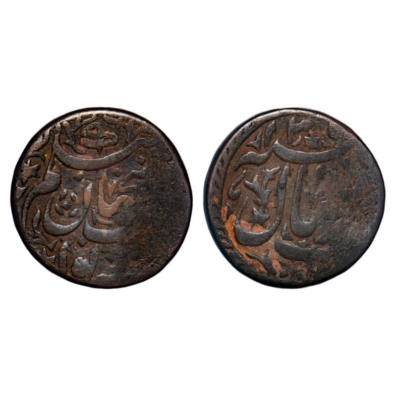 Bhopal, Copper Anna, 30.81g, Shah Jahan Begam (AH 1285-1319 / 1868-1890 AD), Bhopal Mint. AH 1306. KM Y18, type Unlisted, broad flan. About Very Fine, Scarce.