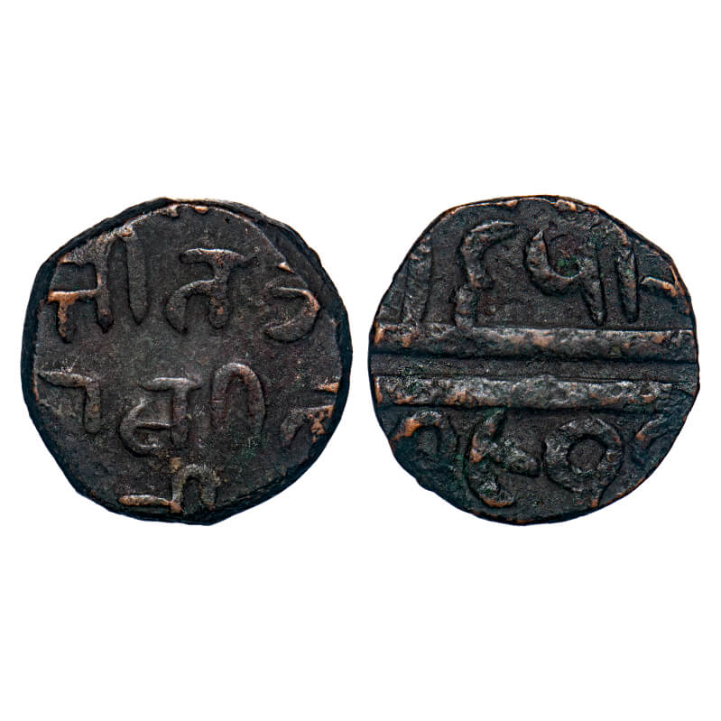Chhota Udepur, Copper Paisa, 7.07g, Jit Singhji (VS 1908-1938 / 1851-1881 AD), Obv: (King's name) i...