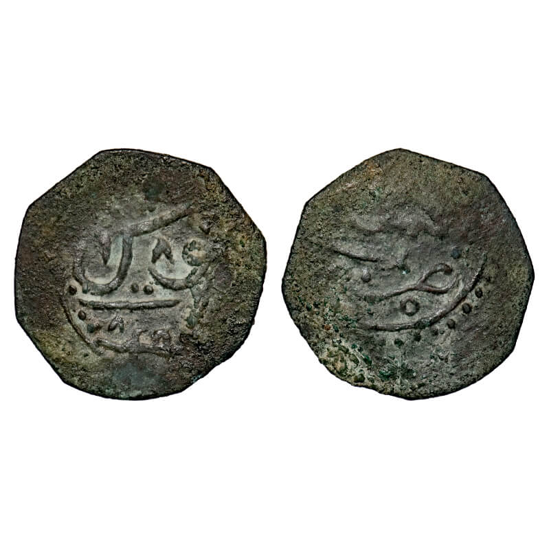 Kalat, Copper Octogon Falus/Paisa, 4.22g, Khudadad Khan (AH 1274-1311/1856-1893 AD), Kalat Mint, (AH 1290). KM 21. Very Fine+, Very Scarce.