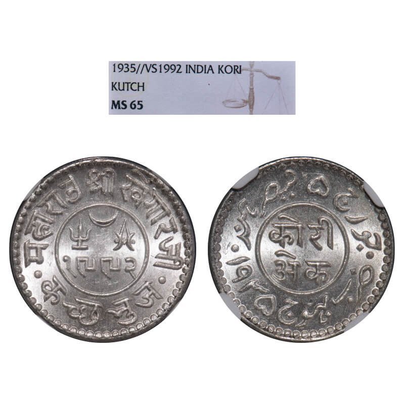 Kutch, Silver Kori, Khengarji III, INO George V, VS 1992/1935 AD. Rajgor. 231.15. NGC graded MS 65, Rare.