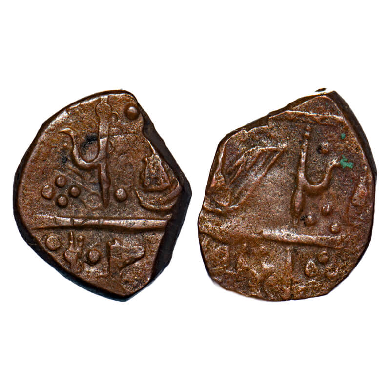 | Sunth, Copper Paisa, 8.87g, Parmar Rulers, Rampur Mint, Obv: Fly whisk (chamar) to left and Elephant goad, Sword, Rev: Fly whisk (chamar) Elephant goad. Sameer Panchal # PM 272 type unlisted. Very Fine, Very Scarce. |