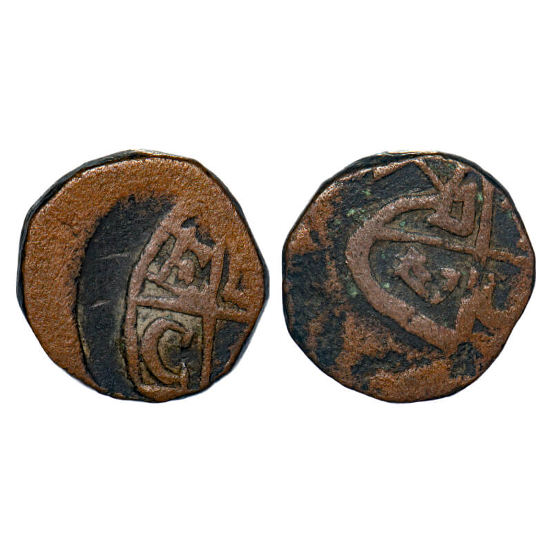 Bombay Presidency, Copper Later Pice, 10.49g, Broach Mint, Both side balemark of EIC, Die shift error. P.Stevens (Page 293) 6.71 types/F.Prid 300. Very Fine, Rare.