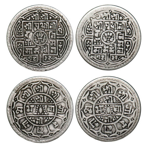 Nepal, Silver Mohar (2 Coins), 5.50g, INO Prithvi Bir Bikram (SE 1803-1833 / 1881-1911 AD), SE 1822 & 1826 / 1883 & 1887 AD, KM 651.1. Very Fine, Scarce.