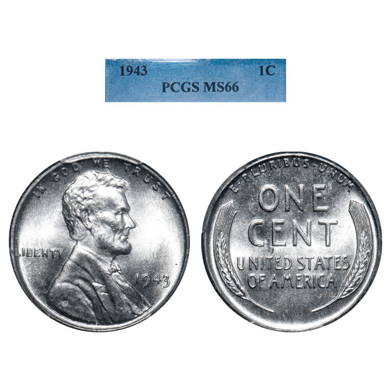 United States of America, Steel 1 Cent, Lincoln Cent, 1943. KM 132a, PCGS graded MS 66, Scarce.