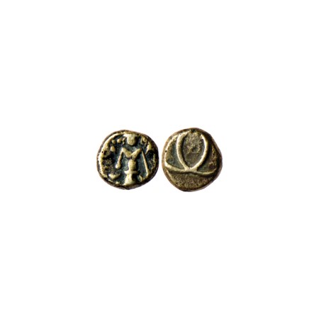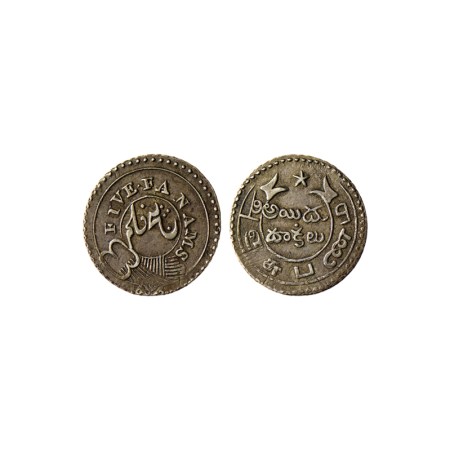 Madras Presidency, Silver Fanam, 1.50gm, (1764-1807 AD 3rd Issue), Obv: A single standing diety (Vishnu) within dotted circle, Rev: C's interlinked. F. Prid 18.