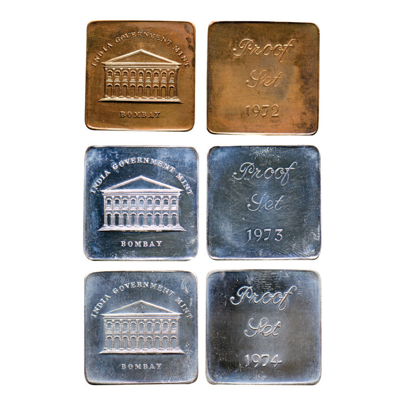 Proof Tokens, Copper & Aluminium (3 Pcs), 1972, 1973, 1974, Indian Government Mint, Proof set tokens which are inside the proof set case, 1972, 1973, 1974. Proofs, Scarce.