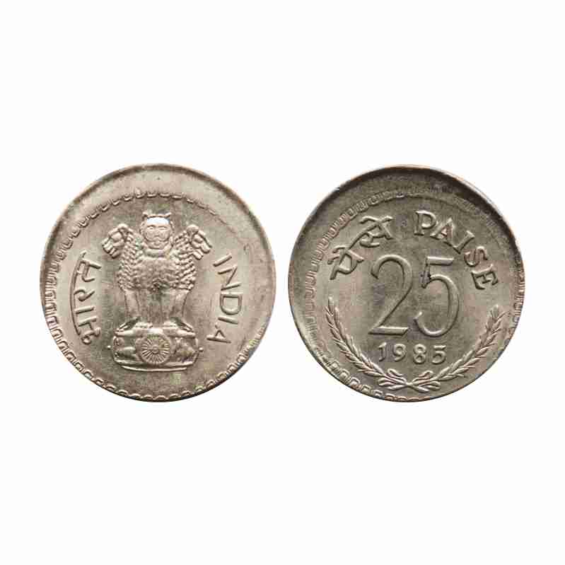 25 Paise, Copper Nickel, (2 Coins), 1984, Bombay Mint, Die Variety. KM# 49.1 type 1, KM# 49.5 type 3, Unlisted type, Rare. Very Fine to Extremely Fine. Rare.